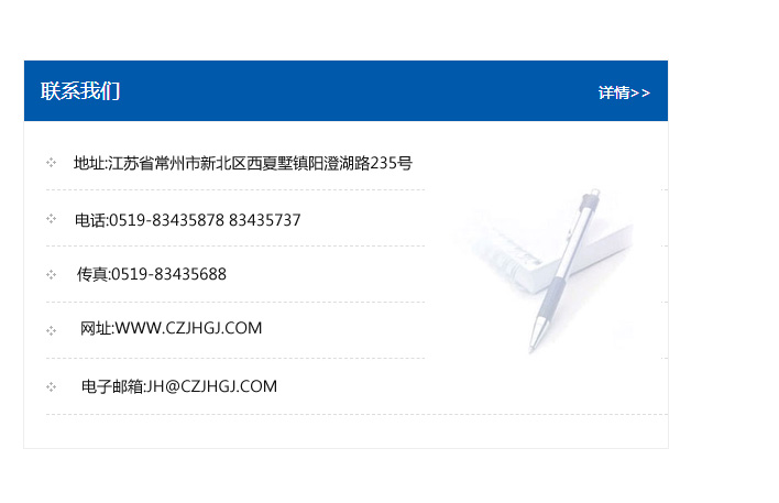 地址:常州市新北區友邦商務大廈1幢16、17層  電話:0519-85101652  傳真:0519-85112595  郵編:213022  網址:www.cz-jiayue_cn.love-mv.com  郵箱:xiajifengaa@163.com